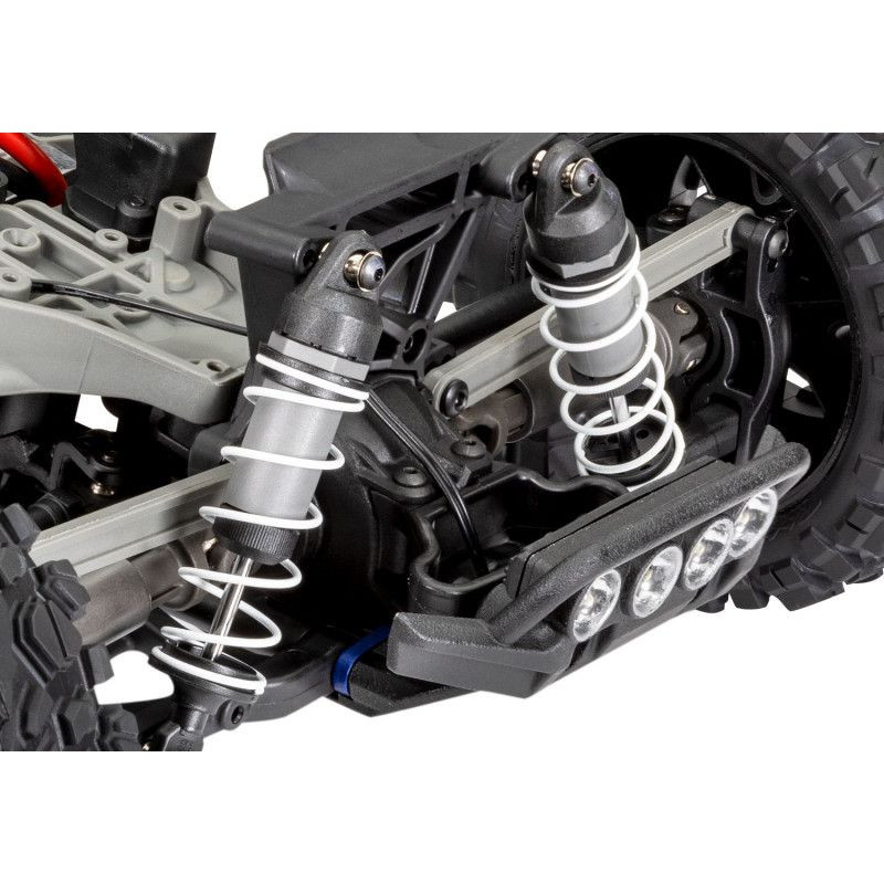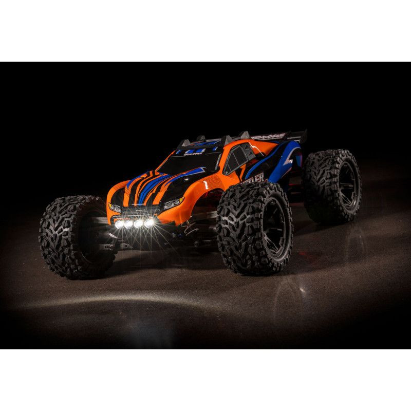 Le tout nouveau Rustler 4x4 est équipé d'un éclairage LED avant et arrière innovant qui lui confère une apparence véritablement unique et assure sa visibilité même dans l'obscurité. Les lumières seront protégées contre tout dommage potentiel grâce à des pare-chocs épais et extrêmement robustes.
