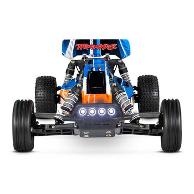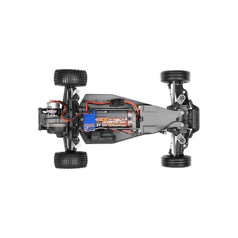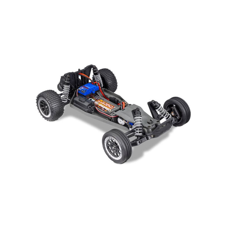 Ce buggy est livré avec une batterie Traxxas 3000 mAh 8,4V NiMH équipée du connecteur iD, ainsi qu’un chargeur rapide 12V de 4 ampères Delta Peak. Le système radio TQ 2,4 GHz garantit un contrôle précis et sans interférences, tandis que le mode entraînement breveté exclusif Traxxas réduit la puissance pour un apprentissage en toute sécurité, idéal pour les débutants.