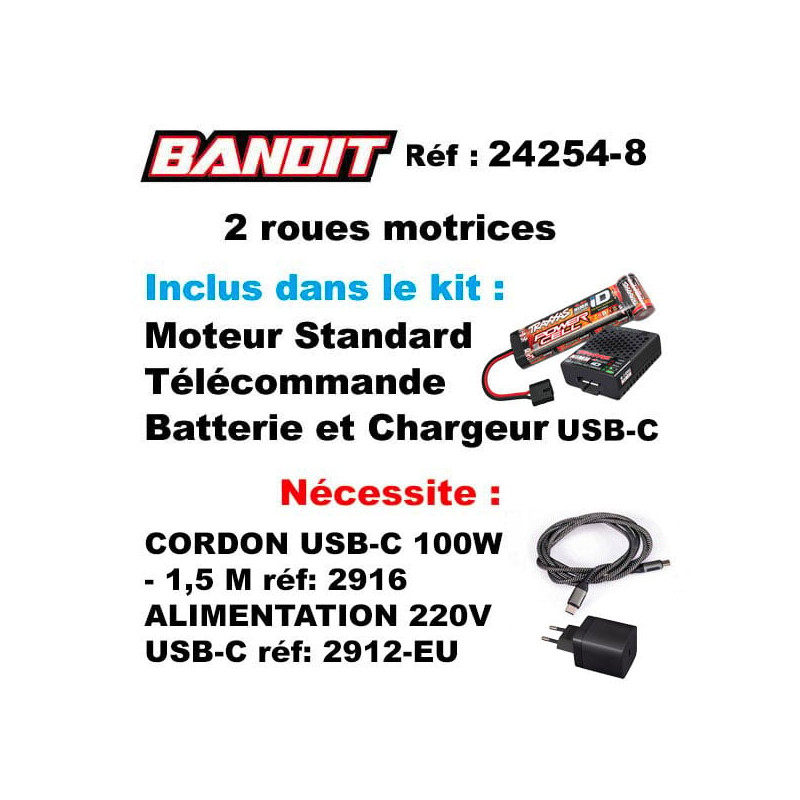 Le Traxxas Bandit 4x2 Brushed a été conçu pour durer. Sa conception robuste, sa compatibilité avec les composants brushless et ses nombreuses pièces de rechange disponibles en font un modèle évolutif et facile à entretenir. Parfait pour découvrir les sensations du pilotage RC tout en disposant d’une base fiable et performante.