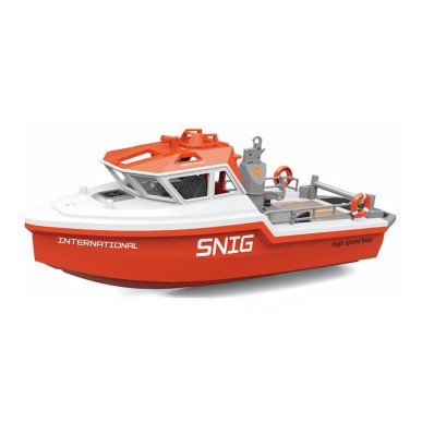 Le Snig est un bateau rapide inspiré des navires SAR (Search and Rescue), idéal pour les urgences en ports, rivières ou eaux éloignées. Il est équipé d'un moteur sans balais et d'une propulsion turboréacteur pour une navigation fluide et silencieuse. Contrôlé via un système radio 2,4 GHz avec une portée de 50 m, il offre des mouvements de virage et une assiette directionnelle. Le modèle est livré avec des accessoires à l'échelle pour plus de réalisme.