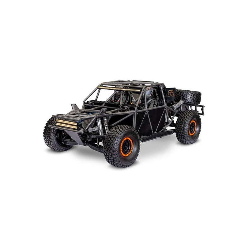 Le châssis du Unlimited Desert Racer reprend celui d’un Desert Short Course 4x4 grandeur nature. Son essieu arrière à 4 tirants assure un débattement impressionnant, apportant un comportement authentique sur terrains accidentés. Les barres antiroulis et les huit amortisseurs GTR complètent l’ensemble pour offrir la meilleure reproduction possible d’un châssis de course tout-terrain.