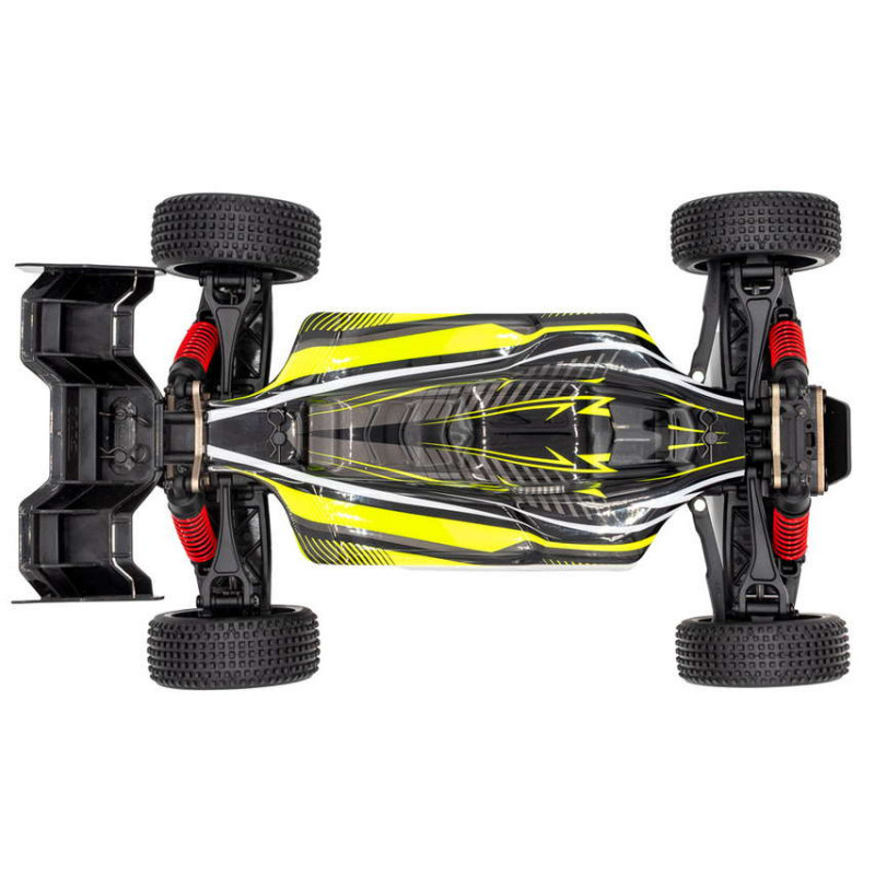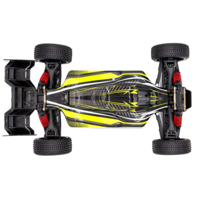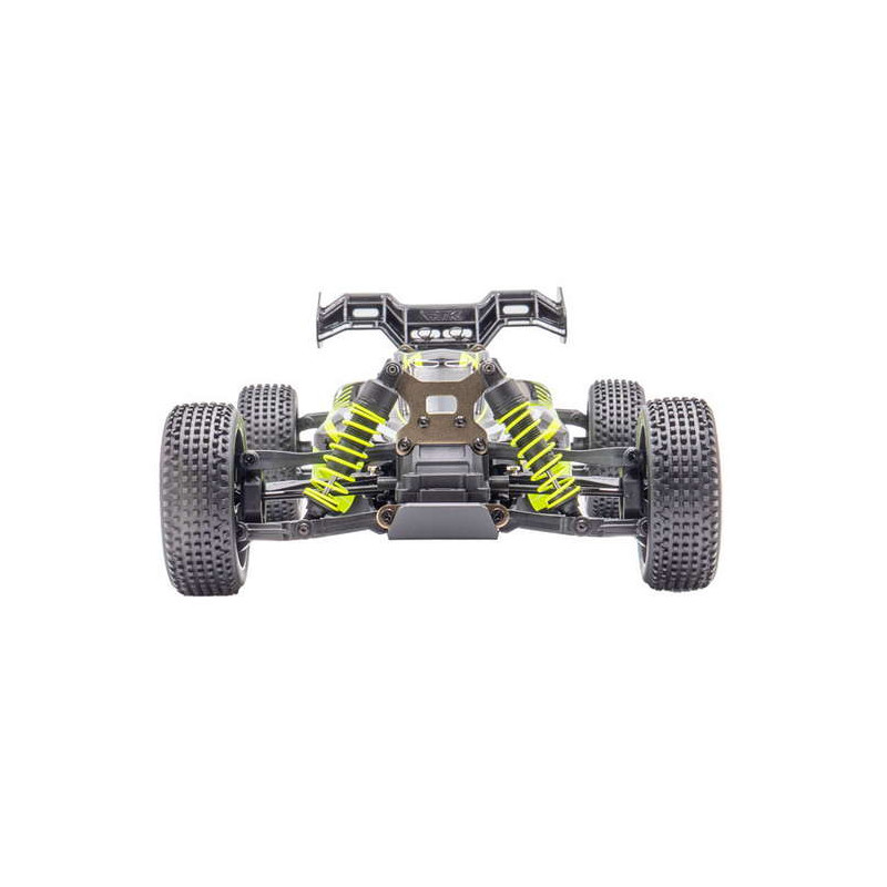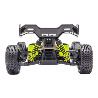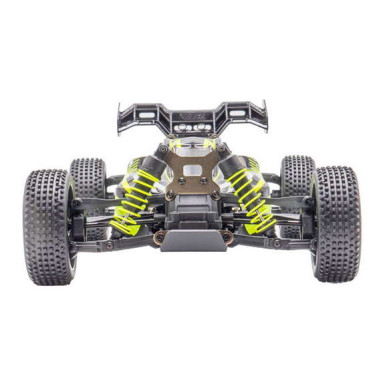 Le buggy est doté de quatre amortisseurs hydrauliques qui absorbent efficacement les chocs, offrant une adhérence exceptionnelle et une excellente motricité. Les pneus avec insert en mousse assurent quant à eux une tenue de route précise et un comportement réaliste sur tous types de surfaces.