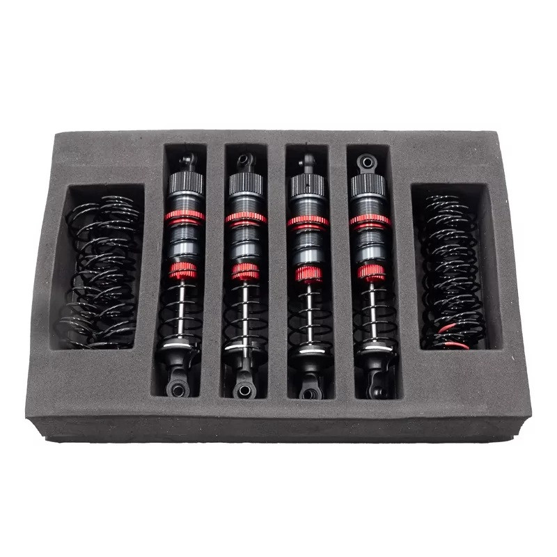 L'ensemble Hobbytech Racing HTR-572085 comprend quatre amortisseurs en aluminium de 85 mm accompagnés de trois sortes de ressorts (souple, intermédiaire, rigide).